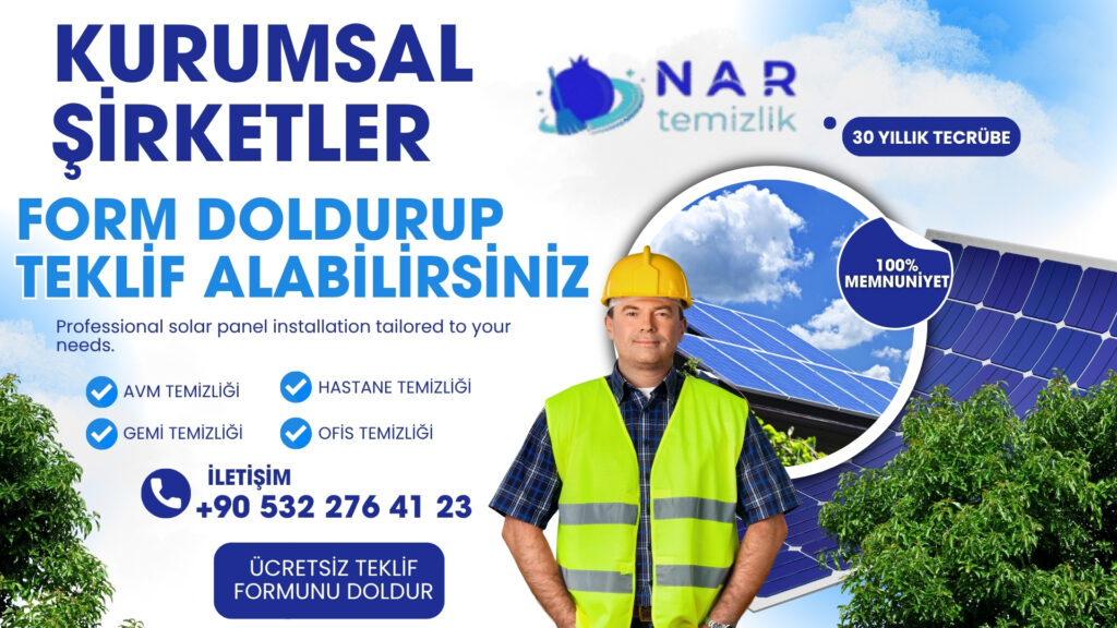 Hastane temizliğinden ofis temizliğine, AVM ve gemi temizliğinden inşaat sonrası ve dış cephe temizliğine kadar geniş bir yelpazede hizmet sunuyoruz. Her biri alanında uzman, eğitimli ve profesyonel ekibimiz, modern ekipmanlar ve çevre dostu temizlik ürünleriyle en yüksek hijyen standartlarını sağlamayı amaçlar.Nar Temizlik olarak hedefimiz, müşterilerimize yalnızca temizlik değil, aynı zamanda güven, düzen ve sürdürülebilir hijyen sunmaktır. Kurumsal firmalara özel teklif ve hizmet modellerimizle, her ölçekten işletmeye profesyonel çözümler üretmekteyiz.30 yıldır olduğu gibi, bugün de “temizliğin güvenle buluştuğu adres” olmanın gururunu yaşıyoruz.